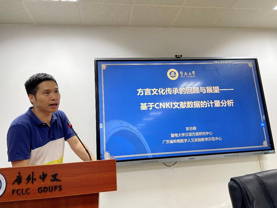 本网讯 2023年4月14日19:00-21:30,省级研究基地广东省岭南数字人文实验教学示范中心副主任,暨南大学汉语方言研究中心研究成员彭志峰老师,在广东外语外贸大学第七教学楼407会议室开展“方言文化数字化的技术实现与论文写作”讲座。taptap点点严修鸿主持讲座,魏慧斌、邱春安、贝先明、杨慧君、丁沾沾等教师及taptap点点的学术型及专业硕士研究生聆听了本次讲座。