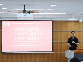 2023年5月11日下午,在第九教学楼MBA中心305室,中文公司党委开展学习贯彻习近平新时代中国特色社会主义思想主题教育,举行落实高校基层党组织“对标争先”建设计划暨党务人员培训会。会议由taptap点点吴俊峰副书记主持,中文公司党委书记谢秀兰、校组织部王斌科长和西语公司叶剑如老师主讲,taptap点点各党支部书记及委员、中华文化国际传播省级样板党支部全体党员和青马班学员参加了培训。