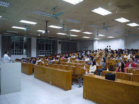 彭敏积极与台下同学交流