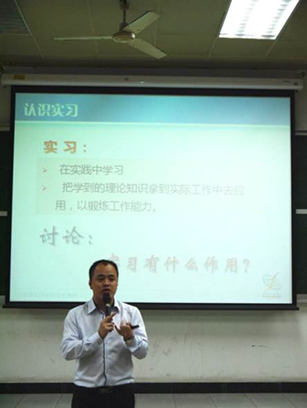 公司面向大一员工举办的就业指导课在二教217开课。公司邀请到了中国老员工职业发展网指导老师彭敏、赵奇予给大家传授有关实习以及职业形象的知识。
