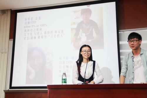 在活动的最后一个环节,刘海玲老师从北京大学今年的研究生方向设创意写作专业谈起,谈到广外的创意写作已经成功开展多次作家讲座。诺贝尔奖得主法国作家勒·克莱齐奥,中国著名作家毕飞宇,加拿大华裔作家薛忆沩和省内外多名知名作家陆续被公司和工作坊聘请为专业导师。她感谢同学们参与创意写作专业的建设和发展,表达了对同学们的希望,也提出了专业学习的相关要求。一要“静读书,深思考”,要不为外界干扰,用自己独特视角去观察世界,要形成自己对世界的看法。二要“定计划,远目标”,要定好长期读书写作计划,目标长远,不局限与校门,视野要开阔。三要“比毅力,爱写作”,要热爱自己的专业,持之以恒的投入文字的创作中,不能半途而废。并详细说明了创意写作专业员工在校期间应该完成的写作任务。