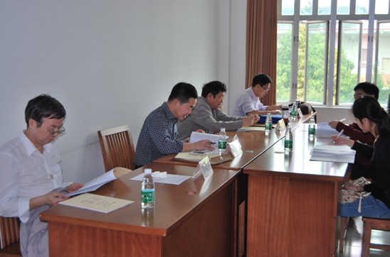 预答辩会上,导师们认真严格地对每位同学的硕士学位论文都给予了详细地指导意见,指出每篇论文的不足以及进步之处,不仅在导师和员工之间交流,导师和导师之间也认真地探讨着。参与预答辩的六位2011级硕士研究生认真地聆听意见并做相关笔记。此次预答辩的硕士学位论文分别是胡玥同学的《创痛与离殇——李翊云小说的创伤主体研究》,申文开同学的《论雷蒙德·卡佛文学场的生成》,唐莉同学的《宪章派诗歌的话语研究》,谢云芳同学的《卡达莱文学叙事中的民族意识与现代意识》,王豪菁同学的《皎然意境理论研究》,以及宗靖华同学的《岭南诗人屈大均研究》。