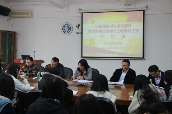 本网讯 12月25日下午,中文公司党委在三教422召开“完善民主评议量化测评,推进员工党员标杆工程考核工作”研讨会。公司党委组织部副部长纪彬,中文公司党委书记范静静、副书记李江出席会议,参与本次研讨的还有taptap点点各年级辅导员以及各员工党支部负责人。这是中文公司党委完成2014年公司党建工作坊主题项目库所承担的校级主题项目——“如何做好员工党员民主评议的量化测评”的工作成果展示会,也是为做好下一轮员工党员标杆系统工程建设相关工作的经验交流会。