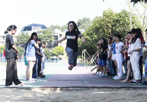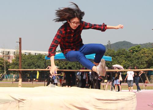 来自1501班的陈欣蕾顶着午后烈日在下午的女子跳远比赛中一举夺冠,向她的师兄师姐们展示了“初生牛犊不怕虎”的勇气。同样值得骄傲的是,来自汉教1301班的陈杰峰以4.76m的可喜成绩刷新了该项目的记录。