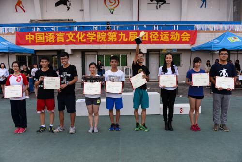 随着男女混合接力的结束,本届运动会拉下帷幕。各班方阵整齐有序地在操场集合。经过了一系列紧张而又严谨的计分工作,工作人员为获奖选手颁奖。1503班等5个班级荣获体育道德风尚奖,团体总分冠军则被文管1403收入囊中,同学们的掌声和欢呼声此起彼伏。