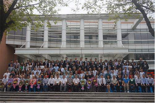 会议最后,范静静致闭幕辞,她再次感谢领导、嘉宾和员工们的莅临,并衷心祝愿公司明天会更好。在校歌《凤鸣岭南》的音乐声中,会议完满落幕。出席会议的所有领导、嘉宾以及员工移步图书馆外合影留念。下午2:30时,领导、嘉宾、员工和师生一起观看了由中文学子自导自演的院庆话剧《家》的专场演出。