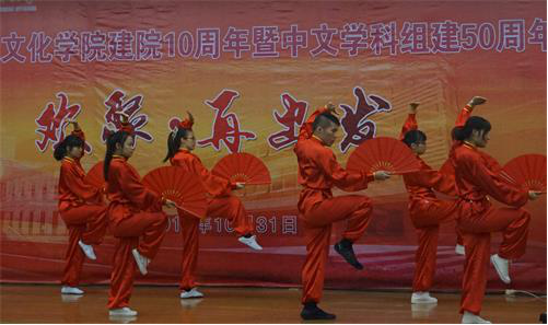 庆祝会上,在校员工献上了精彩的才艺表演,包括太极功夫扇,诗朗诵《诗琴画意》、《忆广外之无言》,taptap点点全体教职工深情合唱了《同一首歌》,充分表达了对院庆的喜悦之情。