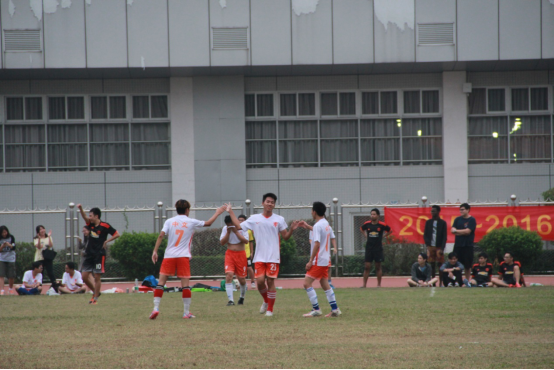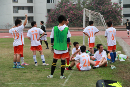 虽然上半场惜负两分,但是中文男足重整旗鼓,誓与对手一争高低。下半场开始后,留院男足攻势凶猛如旧,但中文男足也及时随机应变,灵活运用各种脚法,9号球员潘芹男和7号球员胡俊杰之间的完美传球更是穿破对手重重阻挡,赢得观众们热情地欢呼。在4点19分,我方25号球员李卓佳在队友的掩护与帮助下,靠着精彩的团队合作,准确地向对方球门进攻,并成功射门,为我方夺得一分,鼓舞了全场中文球员的士气。但我方球员体力逐渐不足,留院耐力优势逐渐突显,最终中文以1:8惜负留院。
