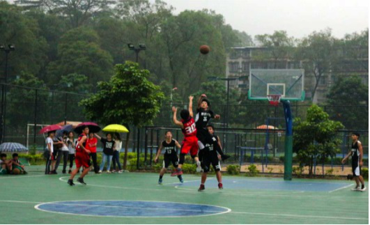 本网讯 4月15日下午,广外杯篮球赛小组赛第三轮的号角吹响,中文男篮与东语男篮展开激烈角逐。赛前天色阴沉,对比赛双方产生一定影响。但双方仍然积极拼抢,使尽浑身解数争夺比赛的胜利。