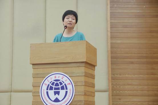 对外汉语系主任严修鸿用“中国走向世界,世界走进中国”开头,结合校训“明德尚行,学贯中西”突出对外汉语专业特有的第二外语的重要性。严修鸿借用孔子“仁者不忧”、“智者不惑”、“勇者不惧”的哲言希望新生们能够早日心智成熟。