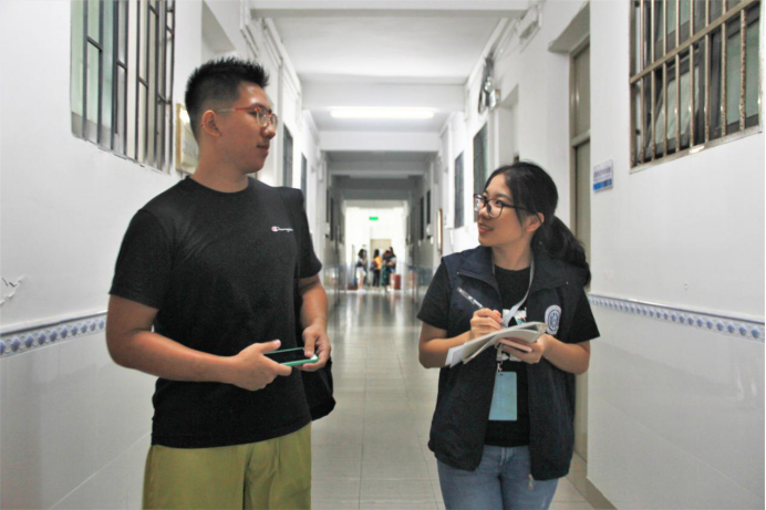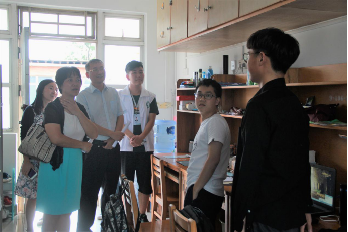 新生报到工作结束后,朱倩渝陪同周东兰、李江走访中文新生宿舍。走访期间,领导们不仅深入宿舍内部,认真查看新生们的住宿条件,还亲切地与新生攀谈,了解他们的生活方式,以确保他们住得舒心、放心。