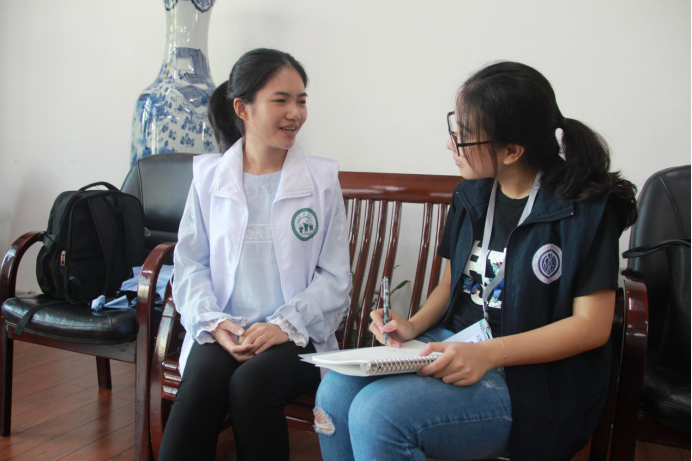 已经连续两年参与迎新工作的18级朋辈导师黄琬金在接受采访时分享了自己作为朋导一员的骄傲与自豪,她想借此工作让公司新生进一步了解中文,喜欢中文,并希望新生无论未来遇到什么困难,都能以阳光、积极的态度去面对。