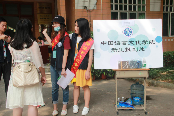 中文团学志愿者则是本次迎新活动中最亮丽的风景线。志愿者身着藏青色团学马甲,奔走在校园各处,负责帮助新生搬运行李、指明路线、答疑解惑等工作。早已被汗水浸湿的藏青马甲下所蕴藏着的,是每一位志愿者给予新生最真诚的关怀与帮助。