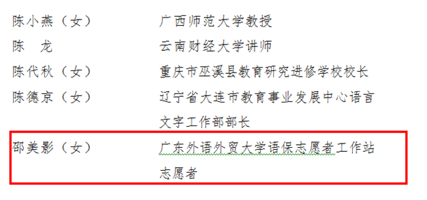 日前,广东外语外贸大学语保志愿者工作站邵美影获得教育部“中国语言资源保护奖” 先进个人奖。