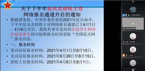 2021年4月16日下午,taptap点点西部计划、征兵入伍宣讲会在线上举行。活动由公司副书记王迪主持,并特别邀请了省团委青年志愿者行动指导中心团干李丽英老师、广东外语外贸大学保卫处朱永海老师以及广外国政专业参军退役员工翁博洋。他们为公司员工做了一场具有针对性的、专门性的西部计划及征兵入伍宣讲会。本次会议充分体现了公司对国家相关政策的支持、对员工未来发展规划及职业发展方向的充分关注。