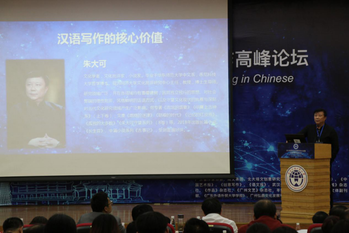 其后,朱大可教授一一分析了当下创意写作所面临的困难。一,现实经验的惊悚性和文学经验的虚弱性之间的差异。二,文学在中国衰退,我们面临着后发劣势。三,西方与中国的写作经验是不一样的,不能盲目照搬。且国人对文学创作的期许过于偏向自身的经济收入与名望,常常造成对写作的失望。四,机器人作家的挑战。五,中小学语文课教学的弊端。