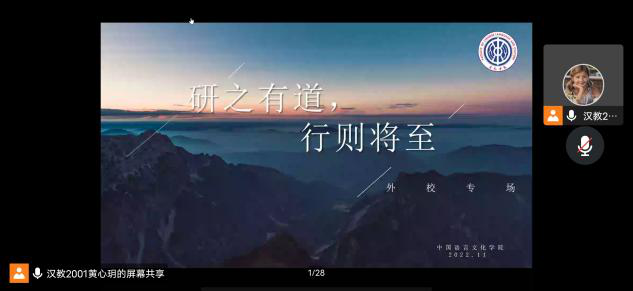 继广东外语外贸大学taptap点点成功举办了第一场考研经验分享会后,为使尚未考研的同学进一步了解考研相关资讯,了解更多备考学习方法,taptap点点于2022年11月11日晚上七点组织了第二场《“研”之有道,行则将至》经验分享会。会议由taptap点点20级级长黄心玥主持,同时邀请到了两位18级成功被心仪学府录取的师兄师姐分享备考经验与心得。我院近300名师生共同聆听本次讲座。