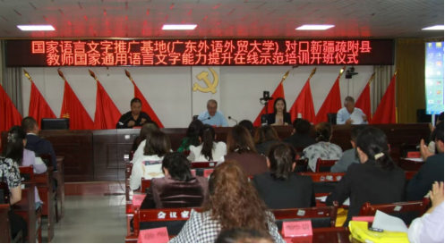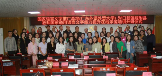 为深入学习贯彻党的二十届二中全会、三中全会精神,落实全国语言文字会议精神,加大国家通用语言文字推广力度,发挥国家语言文字推广基地辐射带动作用,切实提高新疆维吾尔自治区疏附县教师国家通用语言文字能力水平,9月18日上午,由教育部语言文字应用管理司主办,广东外语外贸大学国家语言文字推广基地承办,新疆疏附县教育局协办的“国家语言文字推广基地(广东外语外贸大学)对口新疆维吾尔自治区疏附县教师国家通用语言文字能力提升在线示范培训项目”开班仪式在线上线下同步举行。