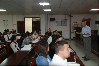 疏附县教育局副局长张希望代表县教育局和全体参训教师向广东外语外贸大学语言文字推广基地及培训团队表示衷心感谢,并要求全体参训教师端正态度,珍惜难得的学习机会,按照培训要求认真听课,切实提高自身国家通用语言文字能力,强调参训教师要学以致用,并在实际教学中为员工创建更好的语言学习环境,为疏附县教育事业添砖加瓦。
