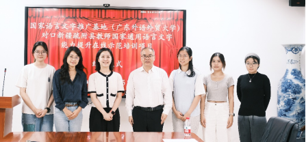 2024年11月15日,国家语言文字推广基地(广东外语外贸大学)(以下简称“基地”)对口新疆疏附县教师国家通用语言文字能力提升在线示范培训项目圆满结业。结业仪式采取线上线下结合形式,疆粤两地连线进行。