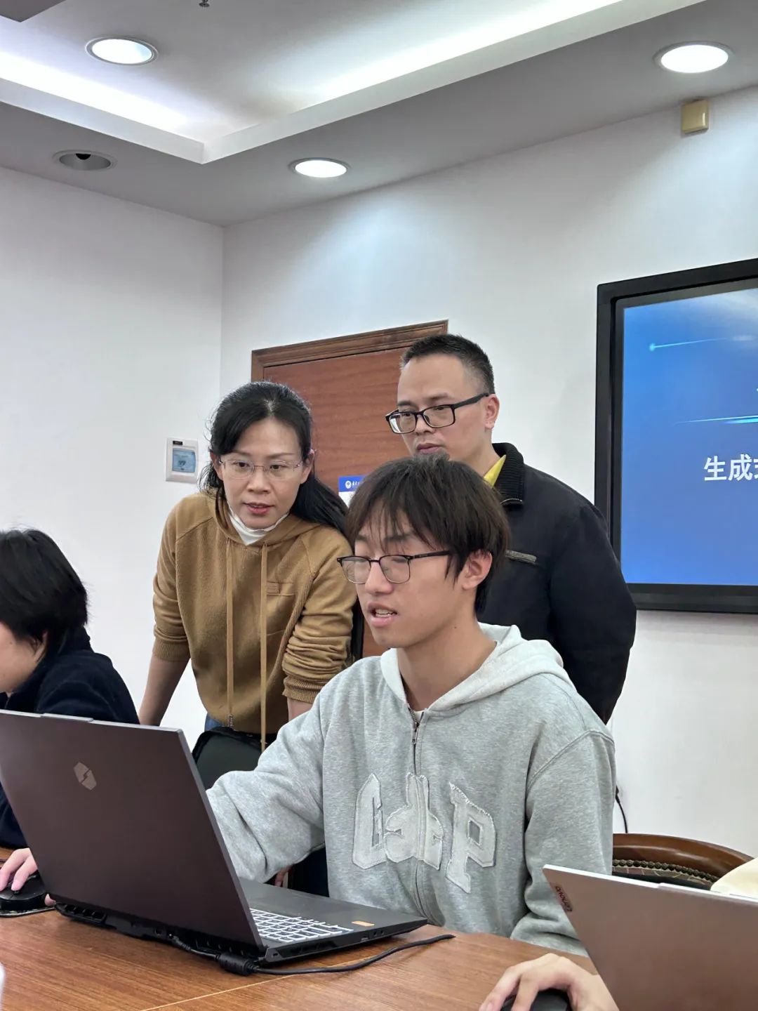 在实践过程中,林炜娜老师和蓝庆保老师为同学们在创作中遇到的困惑进行现场答疑并提供了悉心指导。谢晨同学在实践过程中遇到了AI生成的小说语言风格比较僵硬的问题,林炜娜老师建议道“可以上传自己此前创作的小说,让AI进行模仿学习,并生成你的语言风格。”在根据林炜娜老师建议修改了提示指令后,谢晨同学分享该问题确实得到了很大改善。此外,许多同学提出在使用提示词时,发现AI生成的内容与预期不符,蓝庆保老师耐心地帮助同学们分析提示词中存在的问题,指导其调整“角色”“任务”等要素,使提示词更加具体而精准。在老师们的指导下,同学们不断完善自己的作品,故事中的情节冲突更加精彩,人物形象也更加丰满。