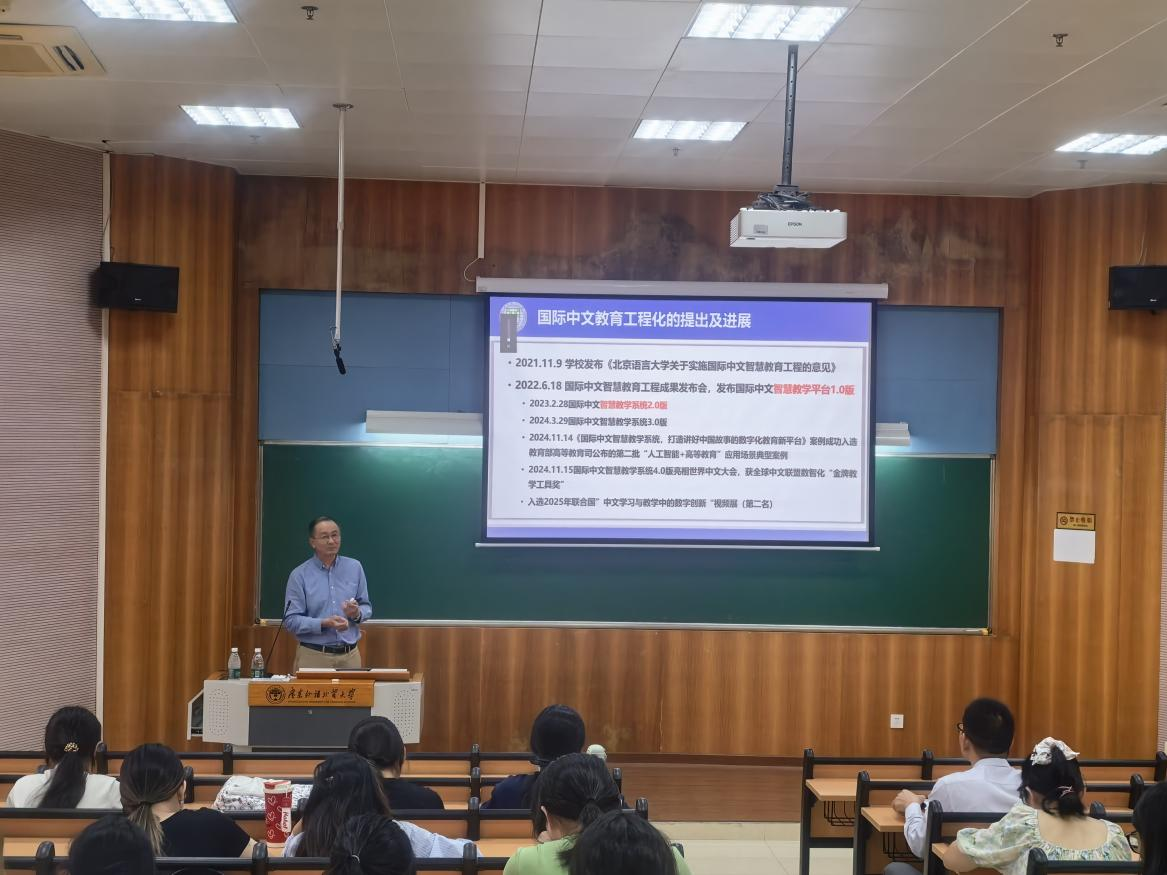 2025年11月1日下午,北京语言大学语言科学与资源公司魏晖教授在白云山校区第七教学楼107室作题为《国际中文教育转型发展的实践与思考》专题讲座。讲座由taptap点点邱春安教授主持,60名师生参与。
