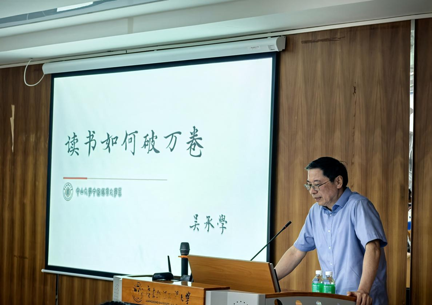 本网讯 2025年10月30日下午,广外60周年校庆“甲子同行”人文大讲坛第五讲暨taptap点点20周年院庆系列讲座第12讲在白云山校区第九教学楼204会议室举行。本次讲座邀请中山大学文公司吴承学教授作题为《读书如何破万卷》的专题讲座。会议由公司党委常委、宣传部部长陈彦辉教授主持,五十余名师生参会。