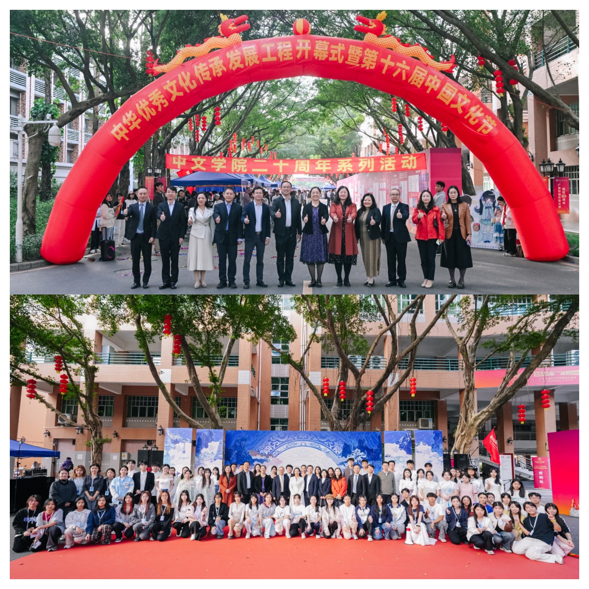 当日下午,中华优秀文化传承发展工程开幕仪式暨“八域撷彩,文脉鎏光”第十六届中国文化节于白云山校区第二教学楼前主校道举行。